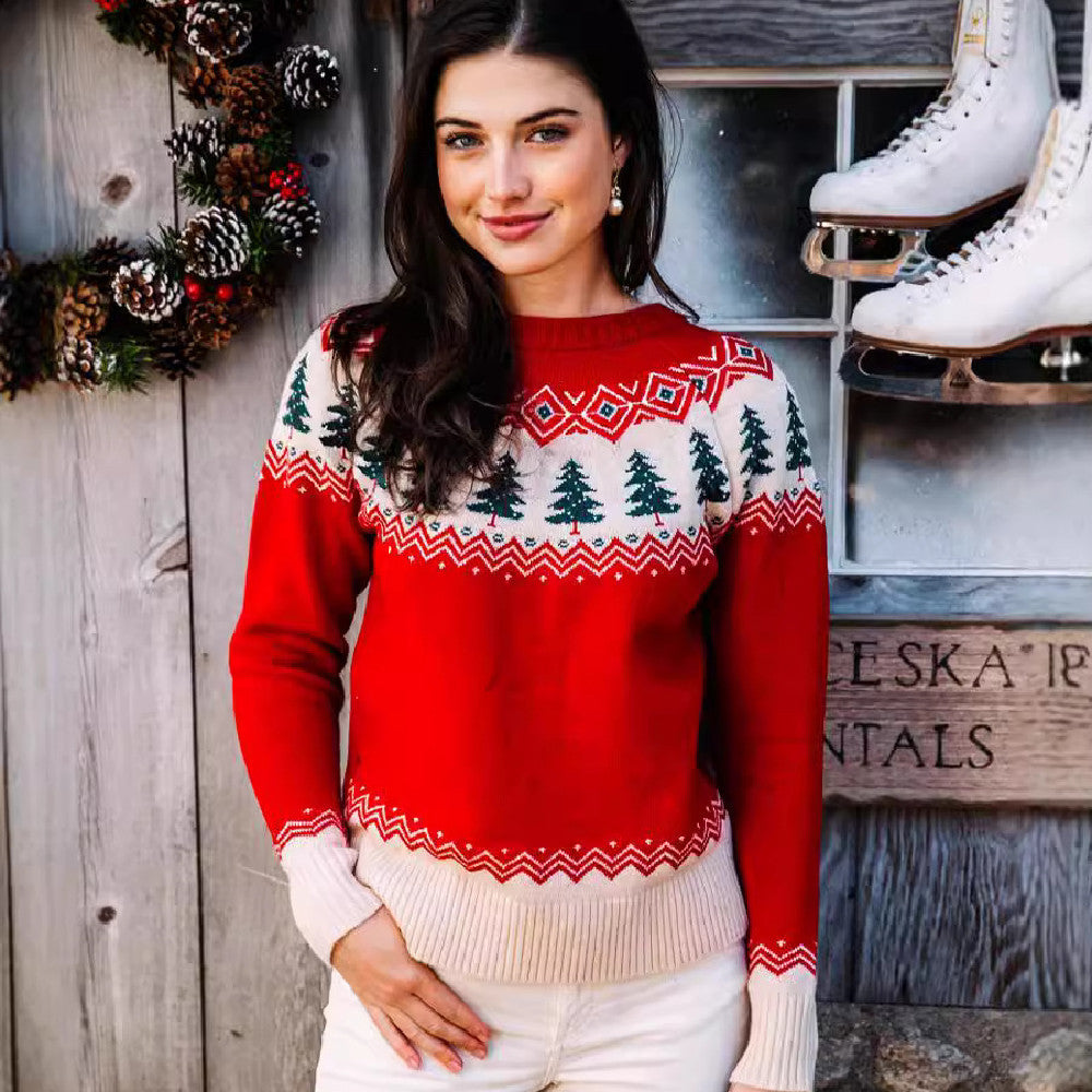 Women's Fashion Casual Printing Christmas Holiday Party Sweater Dress