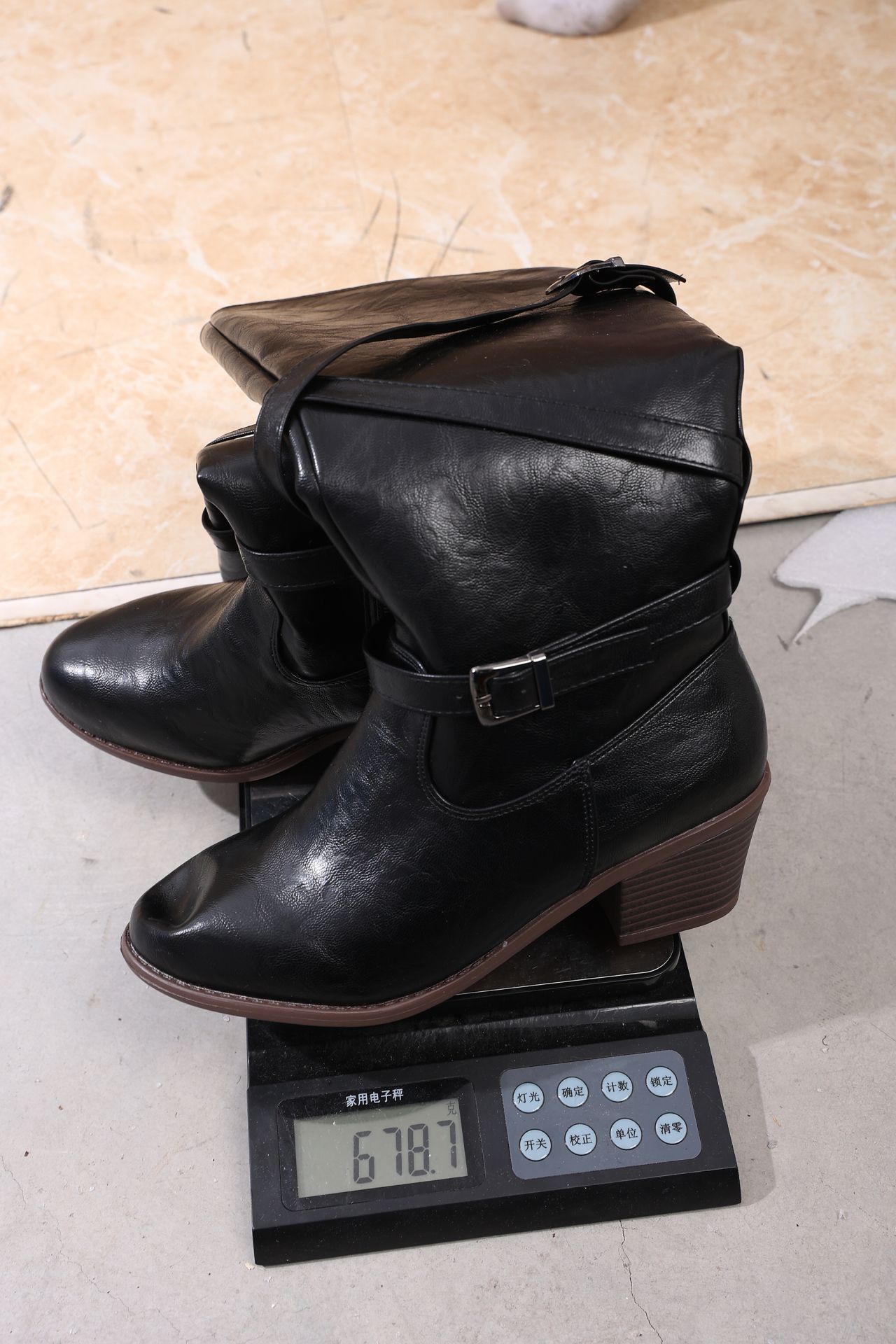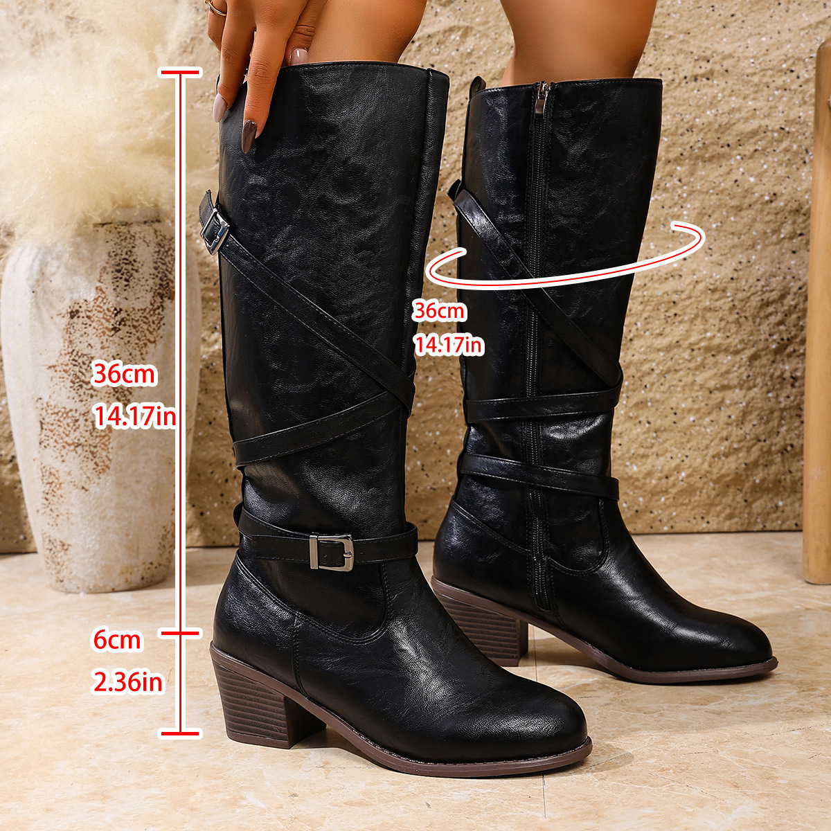 Product information: Pattern: solid color Lining material: Leather Color: brown, black Heel height: high heel (6-8CM) Sock length: high cylinder Heel shape: chunky heel Size: 36,37,38,39,40,41,42,43 Sole craft: glued shoes Sole material: rubber Popular elements: belt buckle Thickness: thickening Toe holder shape: Pointed Shoe Upper material: pu Wearing method: side zipper Applicable Gender: Female Inventory Type: whole transaction Applicable age: Adult Function: height increasing Suitable season: Winter Style: retro style