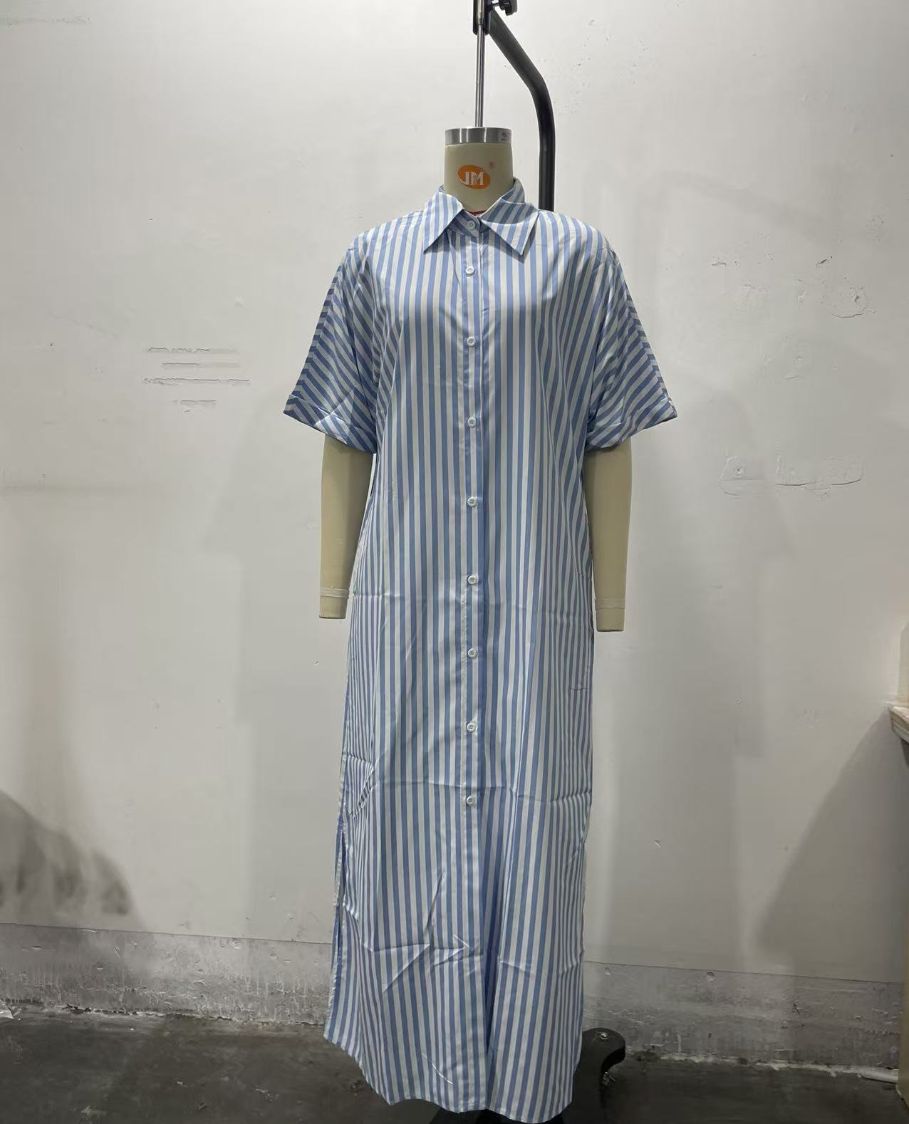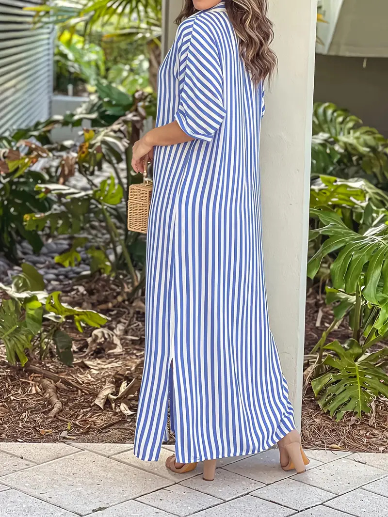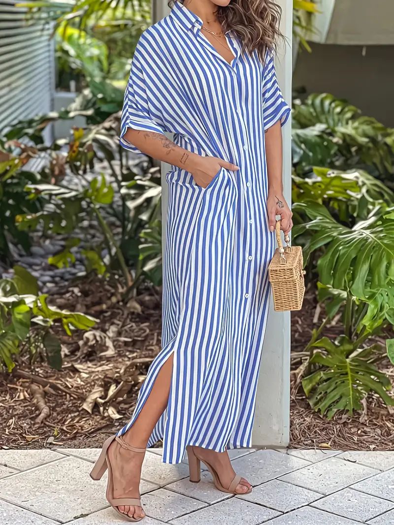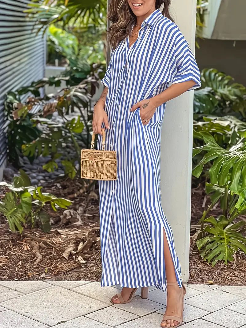 Product information: Sizes: S, M, L, XL, XXL Style: Single-piece Skirt Length: Long skirt Fashion Element: Printed Style: Shirt dress Fabric Name: Synthetic fiber blend Sleeve Style: Regular sleeves Main Fabric Composition: Polyester Sleeve Length: Three-quarter length sleeves