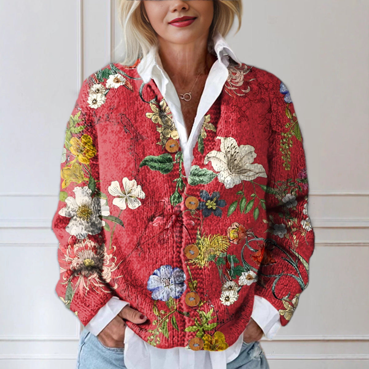 3d Women's Printed Wear Cardigan Knitted Coat