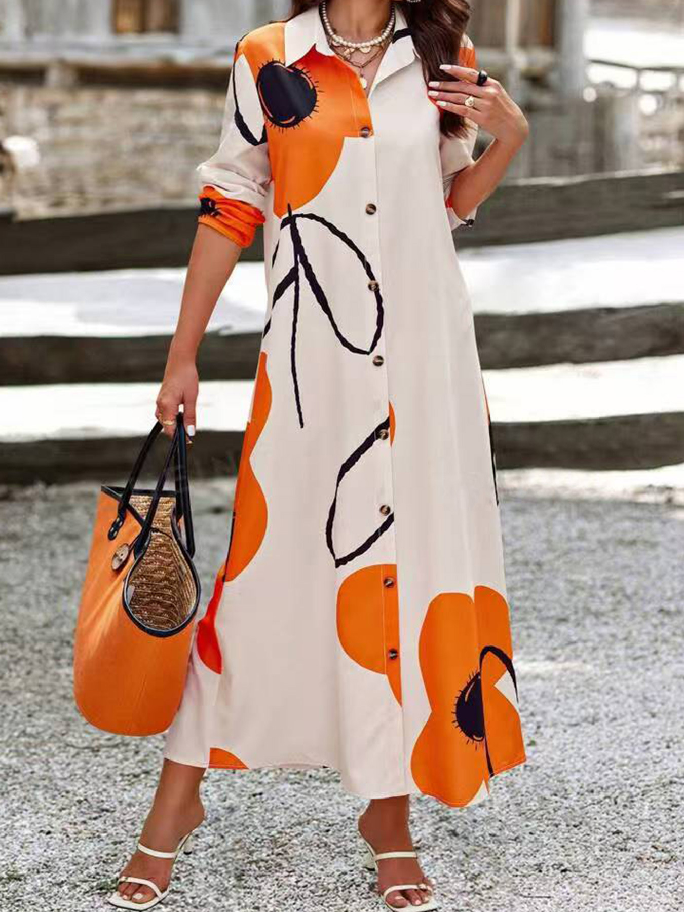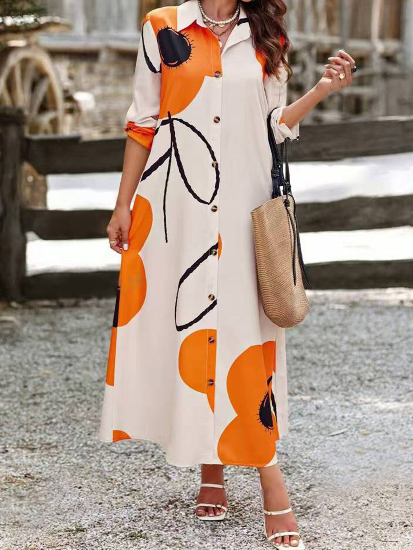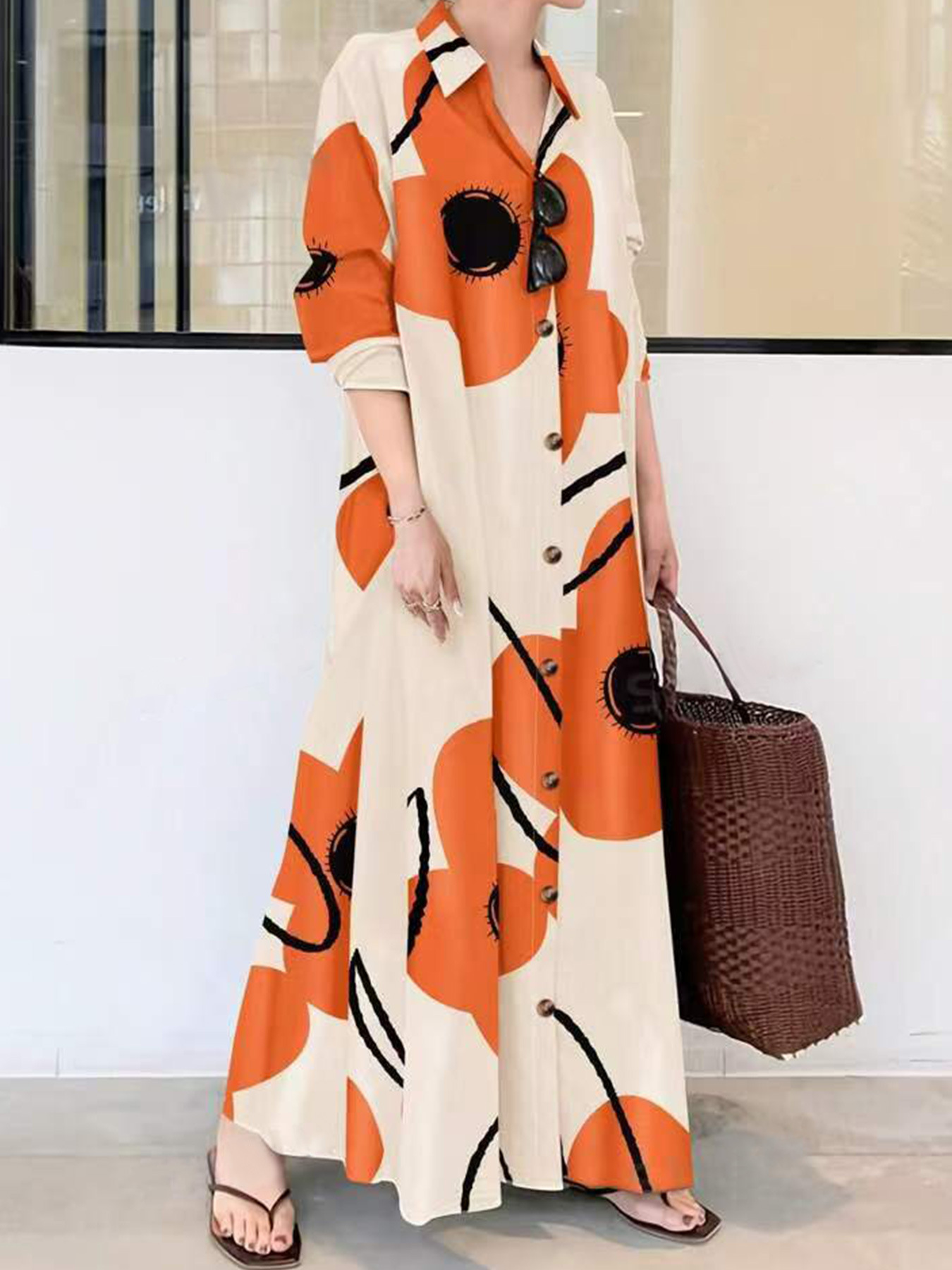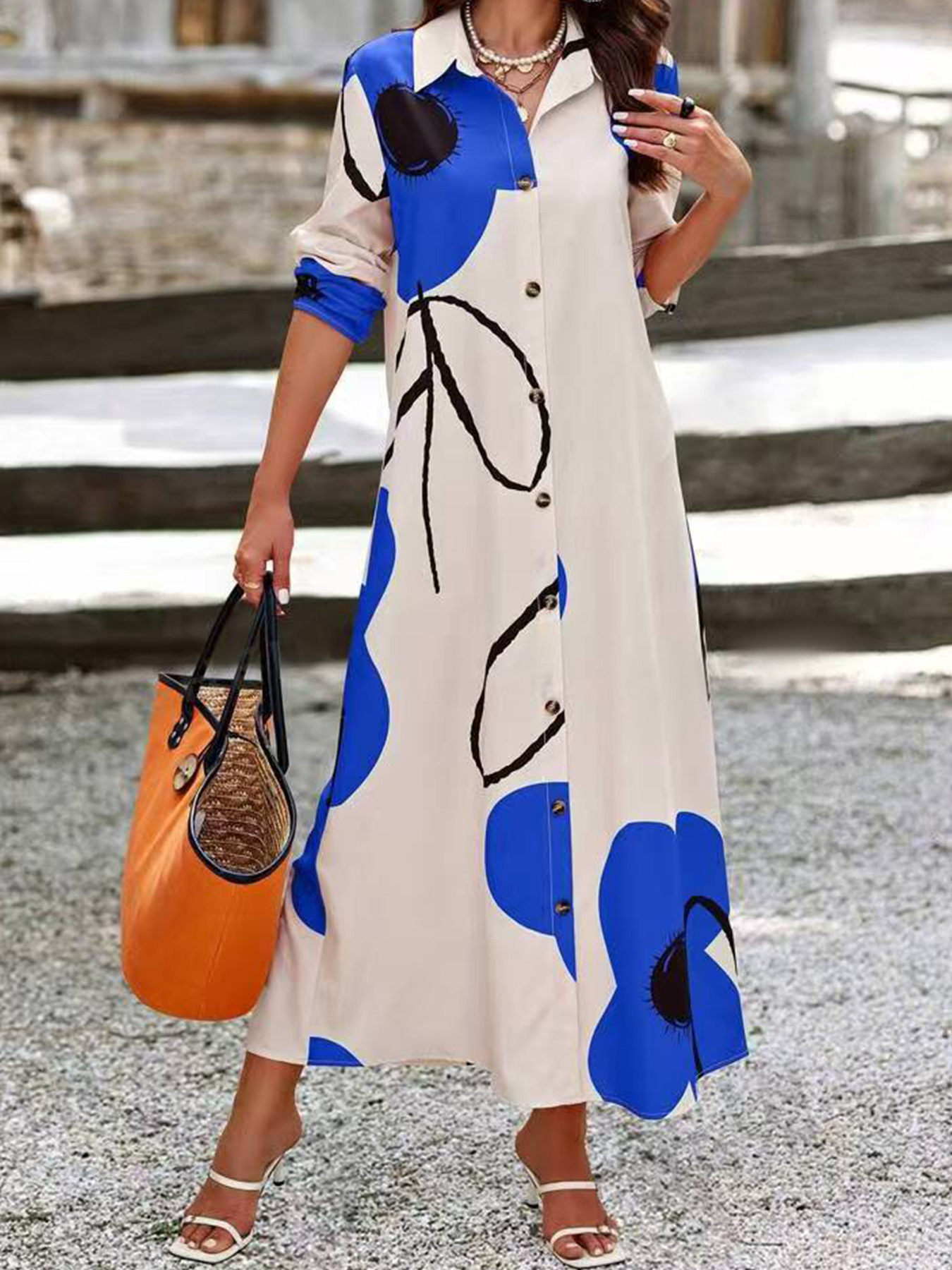 Product information: Pattern: plants and flowers Color: blue, orange Size: XL,XXL,3XL,4XL,5XL Style type: Japanese and Korean casual Popular elements: floral printing Fabric name: Polyester Size: L Style: casual style Process: Printing