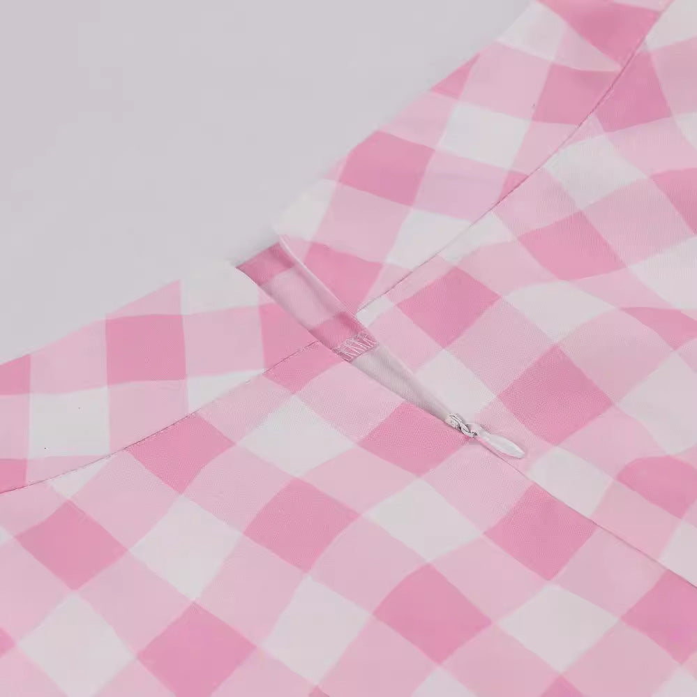Lace-up Backless Slim Fit Top Lotus Leaf Zipper Skirt Plaid Suit
