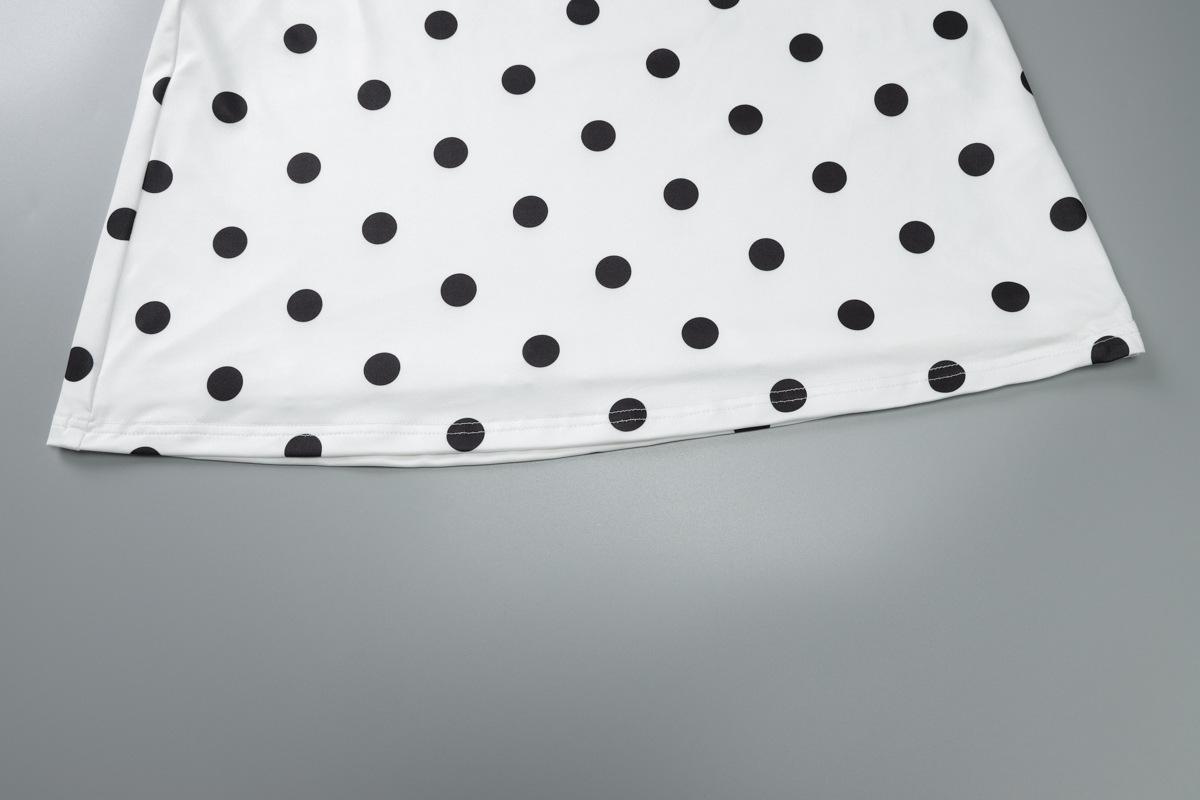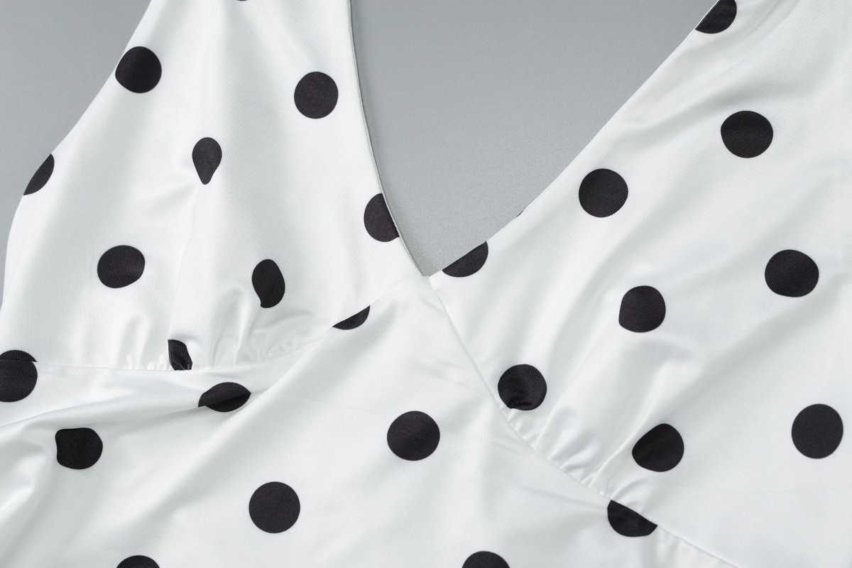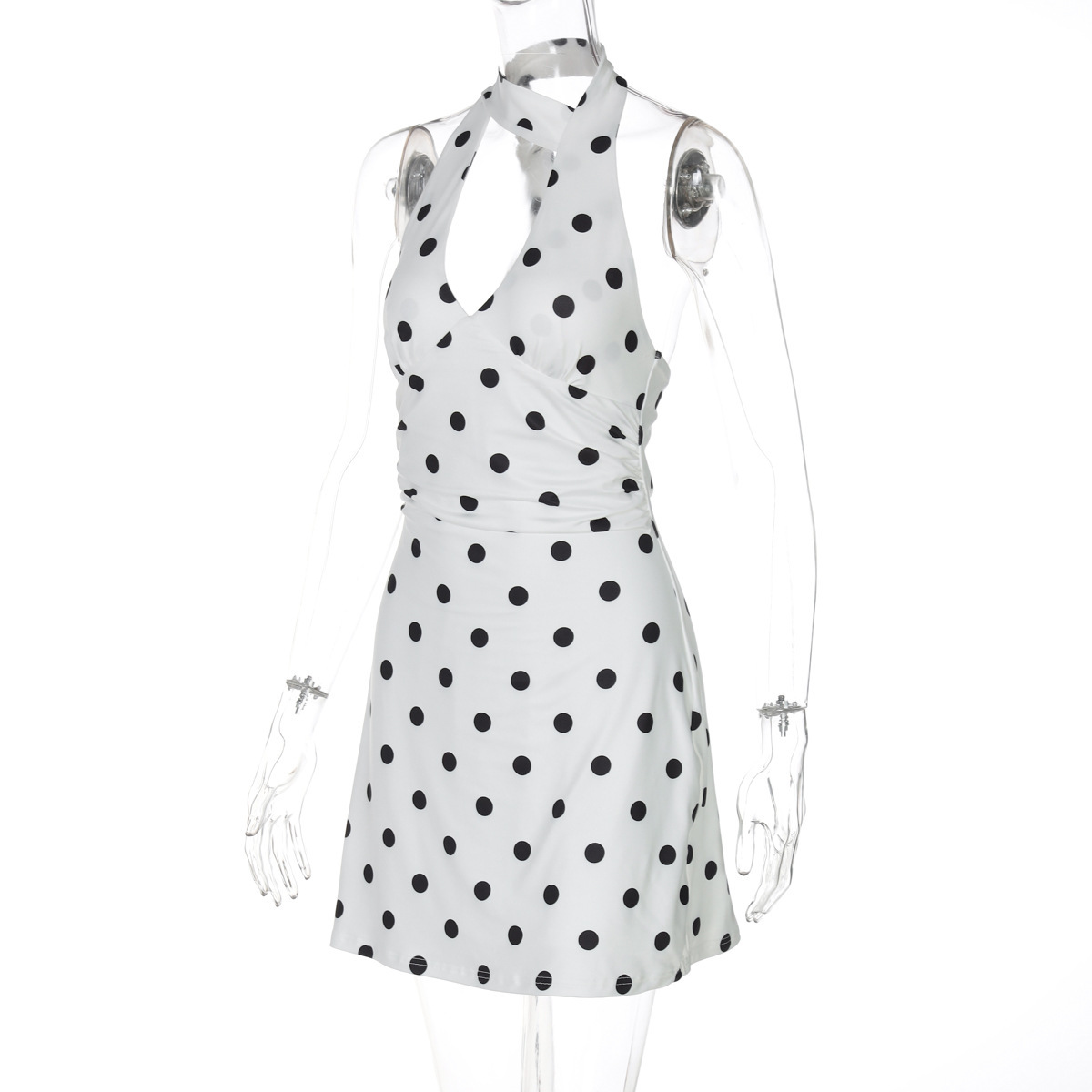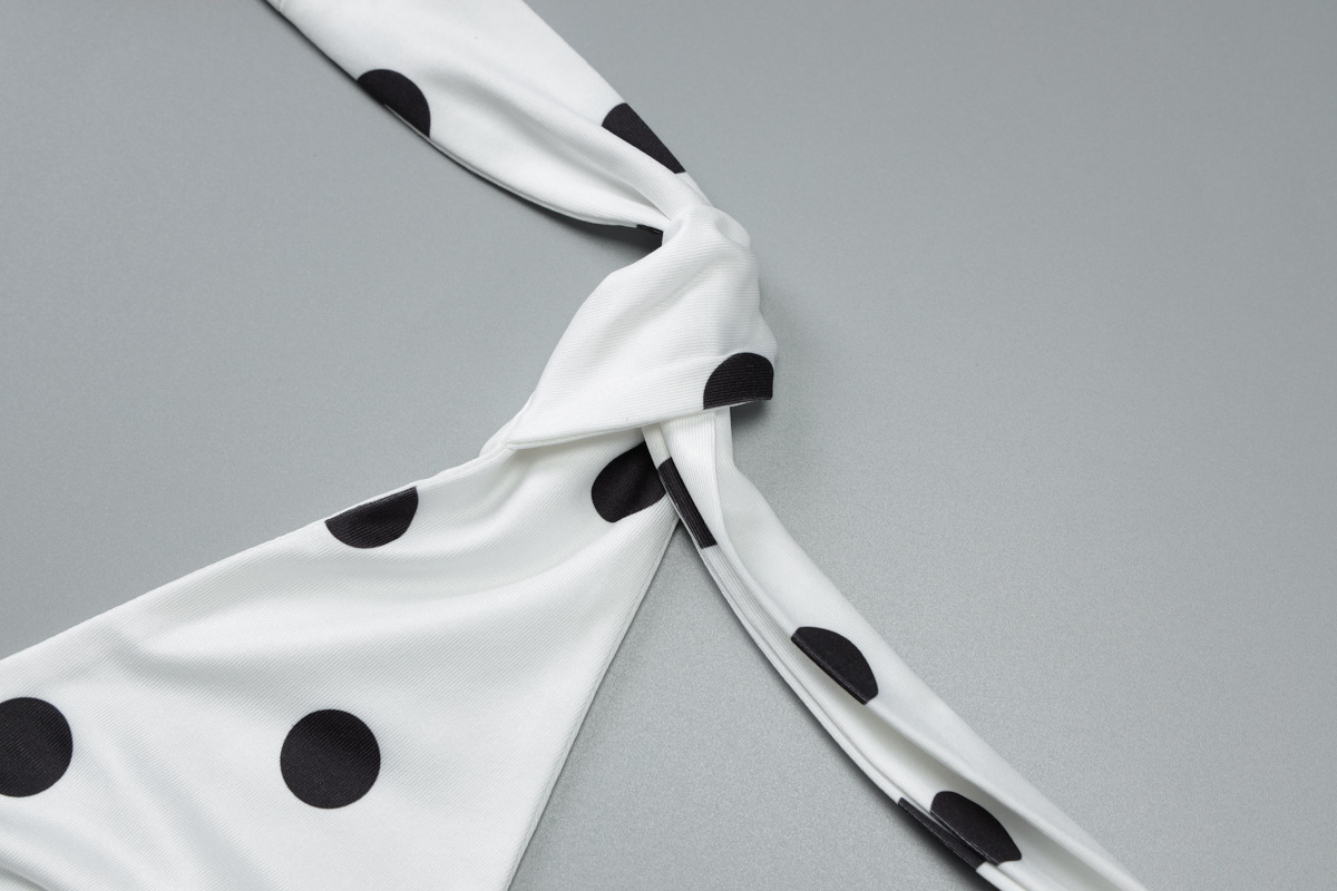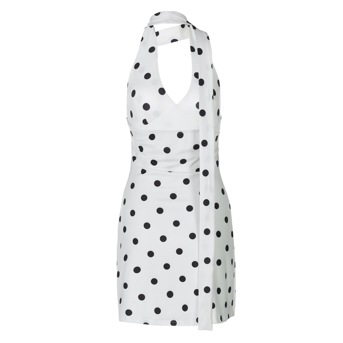 Product information: Pattern: Polka dots Skirt style: Bodycon skirt Color: White Waistline: Mid-rise Sizes: S, M, L How to style: Worn as a standalone piece Skirt length: Ultra-short skirt Trendy element: Halter neck design Design detail: Halter-cut silhouette Fabric name: Milk silk Sleeve style: Sleeveless Main fabric composition: Polyester fiber Sleeve length: Sleeveless Skirt category: Dress Style: Chanel-inspired Fabric treatment: Wrinkle-resistant finish