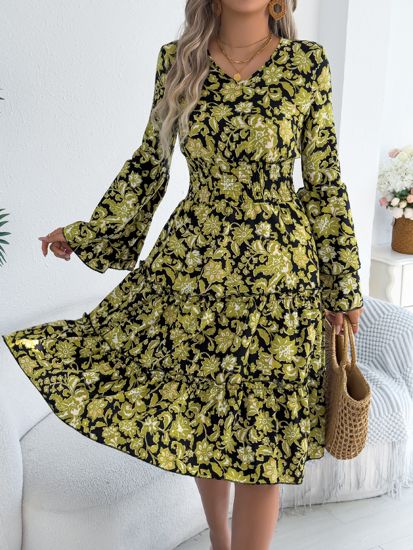 Autumn And Winter New Women's Doll Collar Knitted Jacquard Fabric French Retro Printed Top